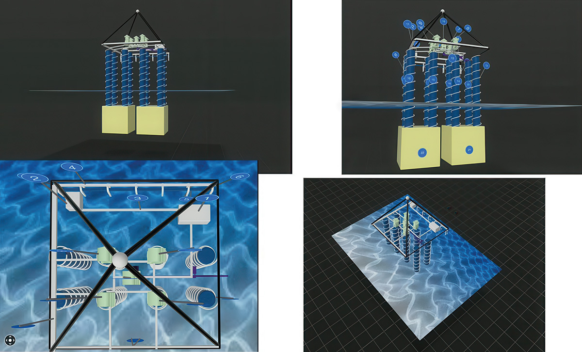 Konstrukcja widoczna pod ziemią jest jeszcze bardziej intrygująca (rycina 5). Tworzy ją osiem pionowych cylindrycznych struktur wyglądających jak wydrążone studnie usytuowanych w kierunku północ-południe, po cztery w każdym rzędzie, schodzących na głębokość 648 metrów i łączących się z dwiema dużymi sześciennymi komorami o wymiarach 80 × 80 metrów. Każda studnia mająca około 20 metrów średnicy jest opleciona opadającą strukturą wyglądającą jak spirala, która może być rodzajem klatki schodowej umożliwiającej dostęp do komór pod studniami.