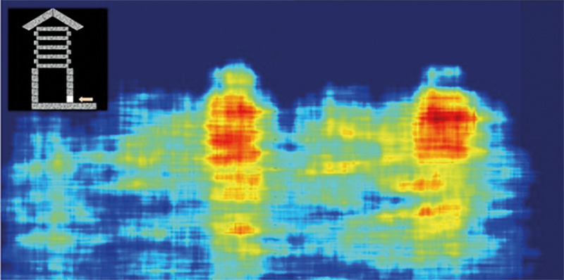 Ryc. 6. Tomogram struktur dżedowych podobnych do struktury dżedowej znalezionej nad komorą królewską w Wielkiej Piramidzie, pokazanej tutaj w lewym górnym rogu. (KRPSAR Technology, 2025)
