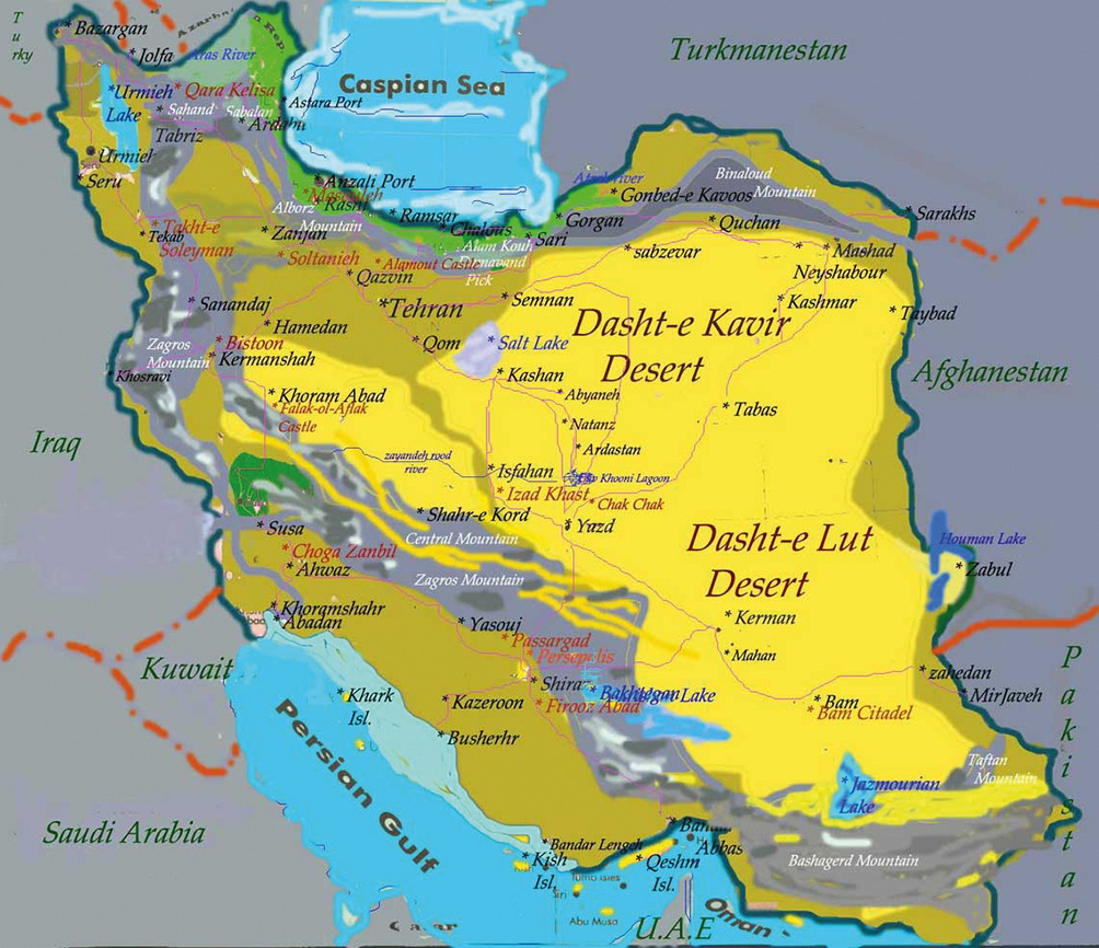 Mapa Iranu przedstawiająca lokalizację Dasht-e Kavir (Zdjęcie: Wikipedia)