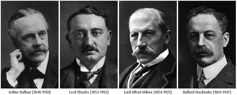 Arthur Balfour (1848–1930), prawdopodobnie bardziej dalekowzroczny niż jego wuj, zdał sobie sprawę, że w XX wieku brytyjska potęga globalna może zostać utrzymana tylko w sojuszu z inną wschodzącą potęgą, USA. Pogląd ten podzielał z magnatem górniczym i arcyimperialistą, Cecilem Rhodesem (1853–1902), dla którego utrata amerykańskich kolonii w amerykańskiej wojnie o niepodległość była absolutną katastrofą. W roku 1891 Rhodes założył tajne stowarzyszenie The Society of the Elect (nominalnie wzorowane na zakonie jezuitów), którego celem było utrzymanie i rozszerzenie brytyjskiej dominacji na świecie oraz zjednoczenie Wielkiej Brytanii i USA. W tym celu ufundował Stypendia Rhodesa, które koncentrowały się na tym, co uważał za „duchowy dom” Imperium Brytyjskiego – na Uniwersytecie Oksfordzkim, a zwłaszcza jego koledżach Balliol i All Souls.