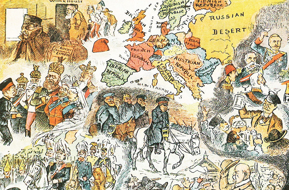 Górna lewa część rysunku zatytułowanego „Sen cesarza” opublikowanego w brytyjskim czasopiśmie Truth (wydanie świąteczne z roku 1890). Rysunek zasłynął z powodu przewidzenia przyszłych wydarzeń. Niemiecki cesarz śni o przekształconej Europie. Większość narodów, które w roku 1890 były rządzone przez koronowane głowy, została przekształcona w republiki. Niektóre położone były w znanych granicach (np. „Republika Brytyjska”), a inne były rozdrobnione (np. „republiki niemieckie”). Z kolei Rosja została przekształcona w „pustynię” („Russian Desert”). W rzeczywistości rysunek ten pokazywał, że „eksperymenty socjalistyczne (marksistowskie), polityczne i ekonomiczne”, które nastąpiły po rewolucji bolszewickiej w roku 1917, były częścią długo planowanego podporządkowania i pacyfikacji wrogów Wielkiej Brytanii, konkurentów, a nawet jej sojuszników.