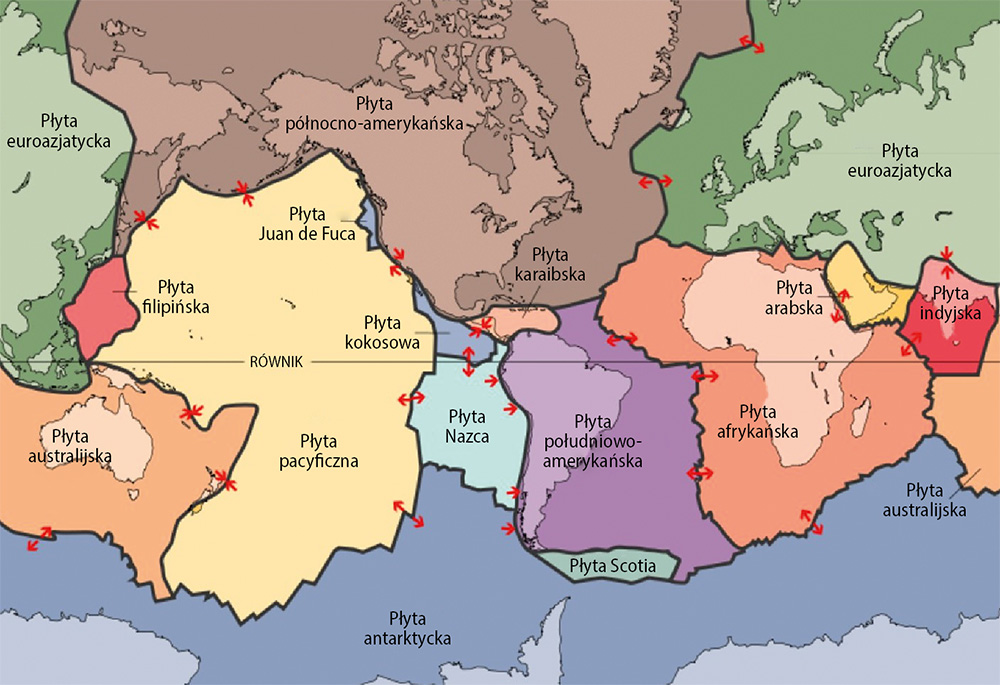 Dobrze wiadomo, że na powierzchni Ziemi znajduje się siedem lub osiem większych i szereg mniejszych płyt składających się ze skorup kontynentalnych i dna morskiego (rycina 4). Te wprowadzone po raz pierwszy w połowie lat 1960. dane są faktem i nic przedstawionego w tym artykule ich nie podważa. Chodzi jednak o to, jak są one interpretowane i wykorzystywane.