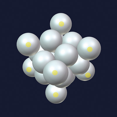 Podczas tworzenia SAM dla każdego pierwiastka zidentyfikowaliśmy szereg potencjalnych izotopów, które są możliwe z punktu widzenia struktury. Następnie poprzez sprawdzenie obfitości, określiliśmy prawdopodobną konfigurację strukturalną dla każdego z nich. Dla każdego pierwiastka istnieje podstawowa konfiguracja strukturalna, którą możemy nazwać izotopem podstawowym. Nie mają one dodatkowych (niewymaganych) „neutronów” lub PEP, jak je definiujemy w SAM. Zazwyczaj ta podstawowa struktura oferuje jednoznaczne punkty połączeń dla dodatkowych PEP, do których mogą się one potencjalnie przyczepić. Kiedy jedno lub więcej z tych miejsc zostaje zajęte przez dodatkowy PEP, powstaje izotop danego pierwiastka. Konkretna konfiguracja różni się w zależności od pierwiastka, ale ogólna tendencja jest taka, że im większy pierwiastek, tym więcej jest potencjalnych miejsc dla dodatkowych PEP. Mnogość możliwości jest wyraźnie zilustrowana na fikcyjnym jądrze przedstawionym na rycinie 15. Proces ten prowadzi również do ustalenia dla każdego pierwiastka maksymalnej liczby izotopów, ponieważ to maksimum jest określone przez liczbę dostępnych miejsc przyłączeniowych. Na przykład dla węgla SAM daje maksymalną liczbę ośmiu dodatkowych PEP, co jest zgodne z obserwacją, że węgiel-20 jest najwyższą liczbą, jaką może osiągnąć węgiel (ryc. 24).