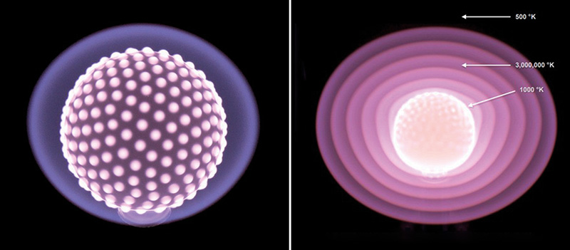 Na rycinie 25 po prawej stronie pokazanych jest kilka koncentrycznych powłok podwójnych warstw wewnątrz plazmy w komorze SAFIRE. Zanim sonda wyparowała, zmierzono niezwykle silne pola elektryczne. Po lewej stronie ryciny 25 widzimy „kępki” anodowe, które wraz ze wzrostem natężenia prądu łączą się w powłoki plazmy. Te podwójne warstwy mogą przechowywać ogromne ilości ładunku/energii. Naszym zdaniem sonda wolframowa, jak również część anody, uległy rozszczepieniu. W komorze SAFIRE doszło do rozszczepienia stabilnych metali! Bardzo podobnego do typowego rozszczepienia uranu – widzimy większą część jądra jako produkt rozszczepienia (bar, cer, lantan) i kilka mniejszych kawałków. Patrząc na strukturę wolframu, nie jest zaskoczeniem, że widzimy bardzo podobne cięższe produkty rozszczepienia.