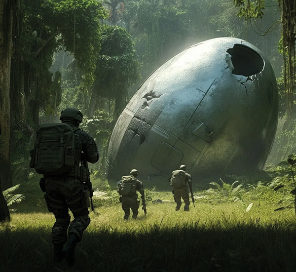 Przypominało mi to gigantyczne metalowe jajo, które pękło, gdy spadło na ziemię. W tamtym miejscu było bardzo gorąco i na początku myślałem, że to tylko jakaś rozbita kapsuła kosmiczna – może radziecka, skoro byliśmy w ich okolicy. Była matowoszara i wyglądała, jakby została wykonana z jednego kawałka metalu – nie było widać żadnych szwów, śrub ani wkrętów.
