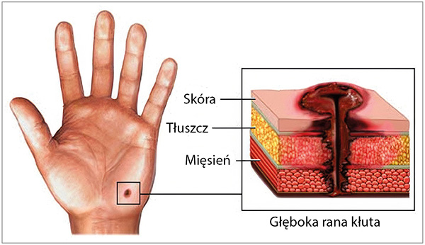 Dokładnie to dzieje się w przypadku ran kłutych. Nadepnięcie na gwóźdź jest uważane za bardzo niebezpieczne, ponieważ mogą się na nim znajdować bakterie tężca. Nie, bakterie nie są w tej historii tymi złymi.