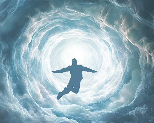 Następnie mogą udać się do tunelu i przemierzyć go. Na jego końcu często znajduje się piękne światło, niepodobne do niczego, co znali na Ziemi. Kiedy przemierzają ten tunel, przebywają w nieziemskiej rzeczywistości, często nazywanej niebiańską, co jest rozsądnym opisem, biorąc pod uwagę, że mogą tam być krajobrazy, budynki, a także nieżyjący już bliscy, z którymi wchodzą w interakcje, w tym zwierzęta domowe.