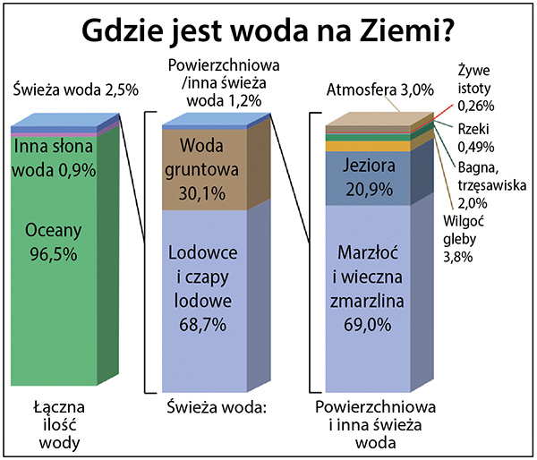 • Całkowita ilość wody, jaka jest obecna na Ziemi, istnieje od samego początku.